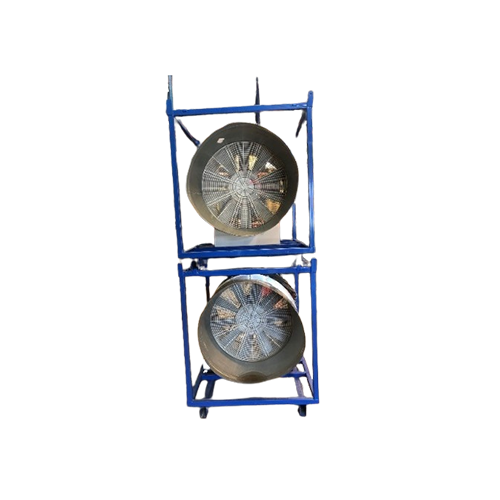 - Ventilateur industriel axial équipé d’un châssis mobile gerbable et grutable.